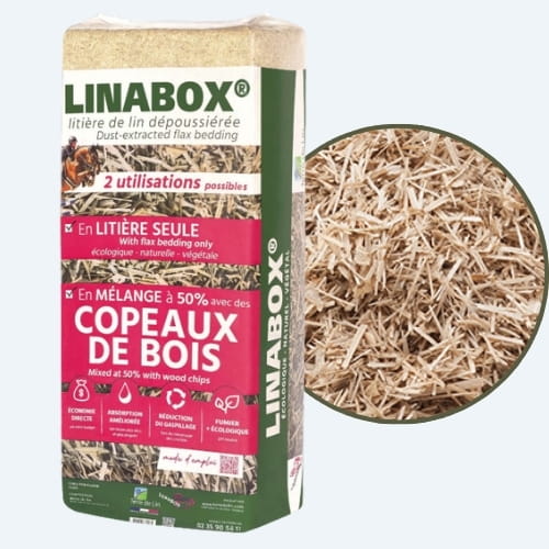 Ściółka LINABOX® powstaje w 100% z naturalnych łusek lnianych, bez dodatków chemicznych, klejów czy substancji zapachowych. Len to surowiec odnawialny, biodegradowalny i przyjazny środowisku, co czyni LINABOX® doskonałym wyborem dla nowoczesnych, świadomych hodowców.
